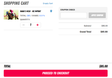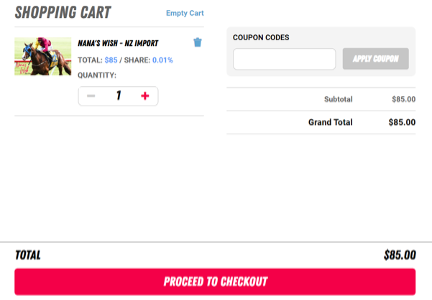 There are limited shares available in MyRacehorse Plus starting at 1%. There are no limitations on number of available shares you can purchase – so first in best dressed!