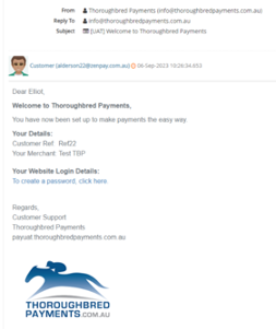 If you have not received an email from ‘info@thoroughbredpayments.com.au’ containing your login details, please check both your inbox and junk email folder.